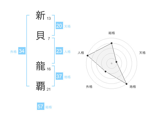新貝 龍覇さんを姓名の画数から五運を鑑定