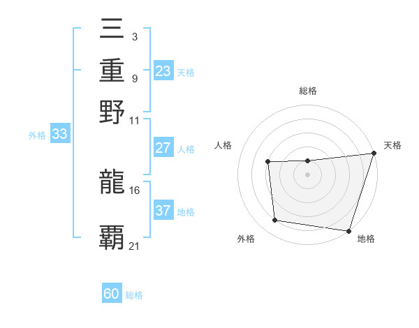 三重野 龍覇さんを姓名の画数から五運を鑑定