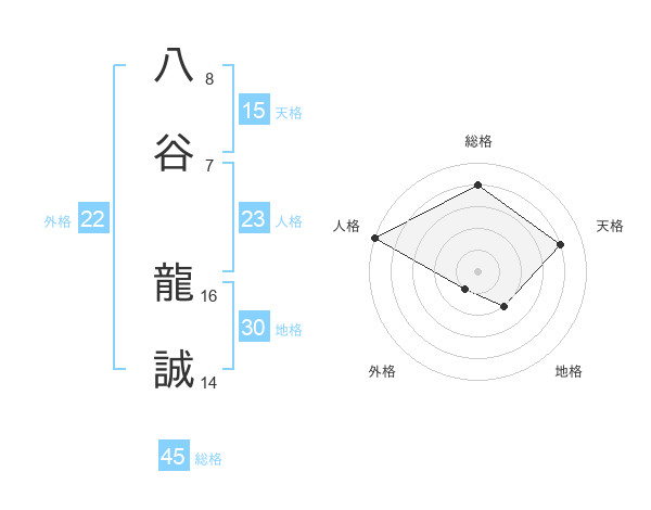 八谷 龍誠さんの総格は45画の4点!