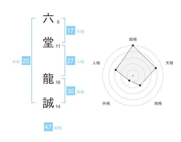 六堂 龍誠さんの総格は47画の5点!