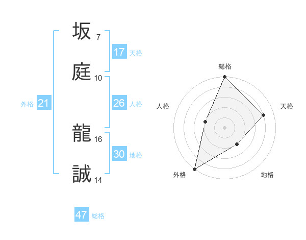 坂庭 龍誠さんを姓名の画数から五運を鑑定