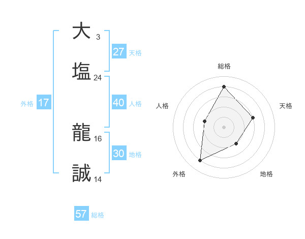大塩 龍誠さんを姓名の画数から五運を鑑定