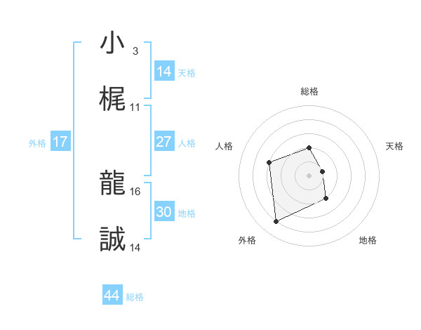小梶 龍誠さんを姓名の画数から五運を鑑定