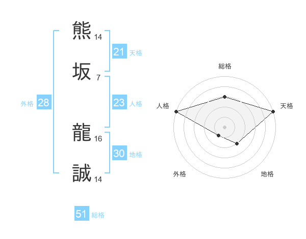 熊坂 龍誠さんの総格は51画の3点!