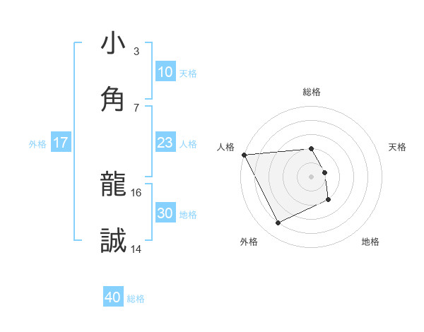 小角 龍誠さんを姓名の画数から五運を鑑定