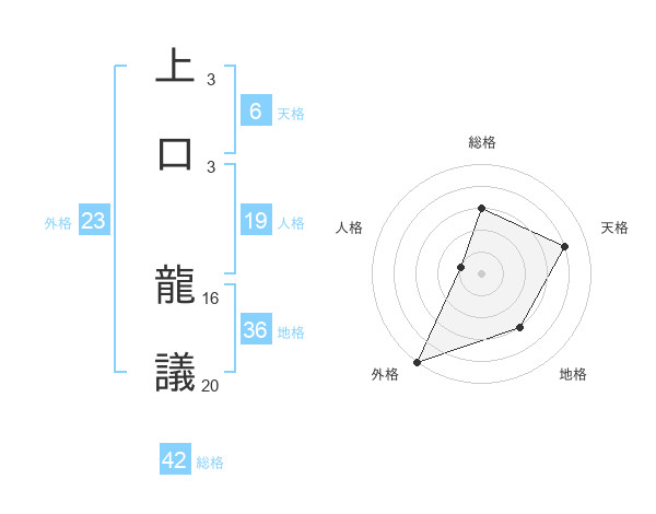 上口 龍議さんの天格は6画の4点!