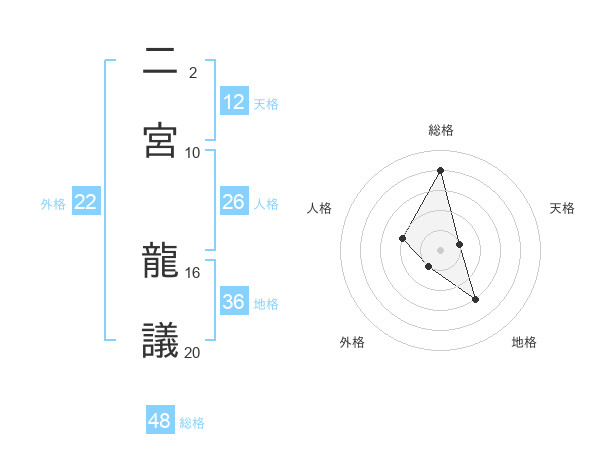 二宮 龍議さんを姓名の画数から五運を鑑定