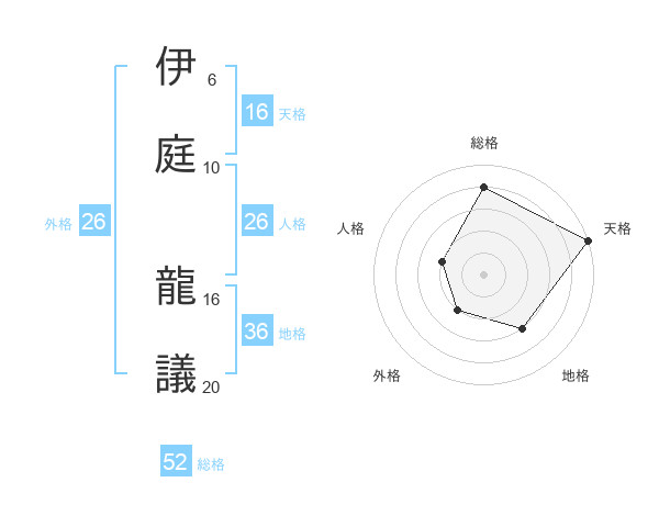 伊庭 龍議さんの天格は16画の5点!