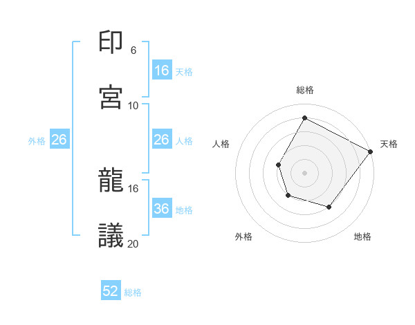 印宮 龍議さんを姓名の画数から五運を鑑定