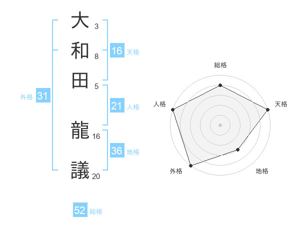 大和田 龍議さんを姓名の画数から五運を鑑定