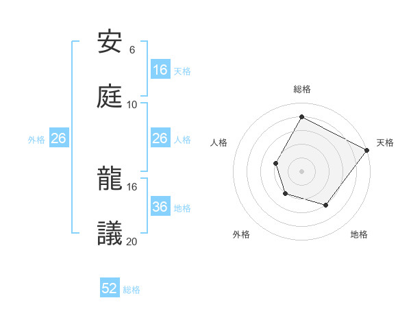 安庭 龍議さんを姓名の画数から五運を鑑定
