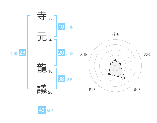 寺元 龍議さんを姓名の画数から五運を鑑定