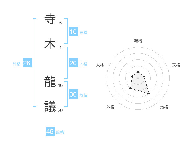 寺木 龍議さんを姓名の画数から五運を鑑定