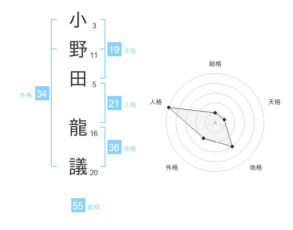 小野田 龍議さんを姓名の画数から五運を鑑定