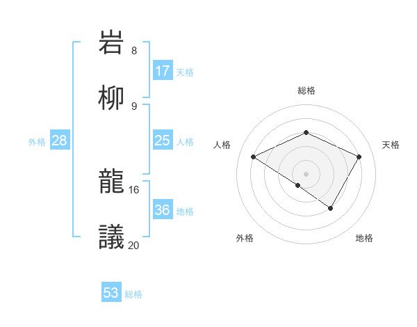 岩柳 龍議さんを姓名の画数から五運を鑑定