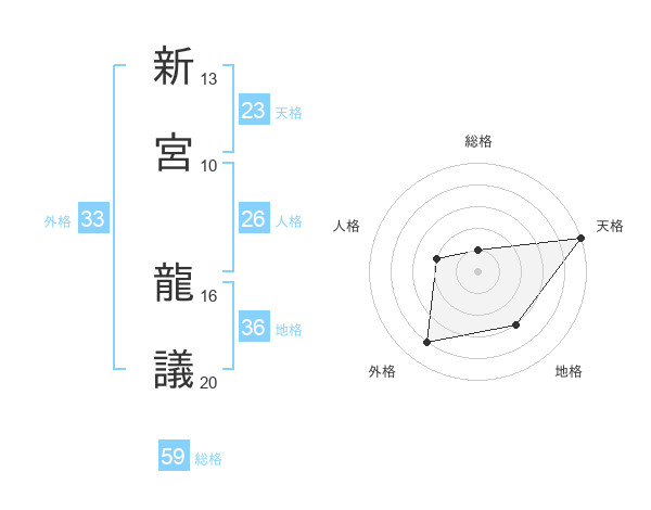 新宮 龍議さんの総格は59画の1点!