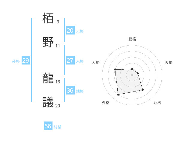 栢野 龍議さんを姓名の画数から五運を鑑定