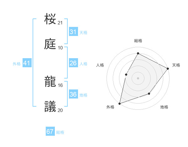 桜庭 龍議さんの天格は31画の5点!
