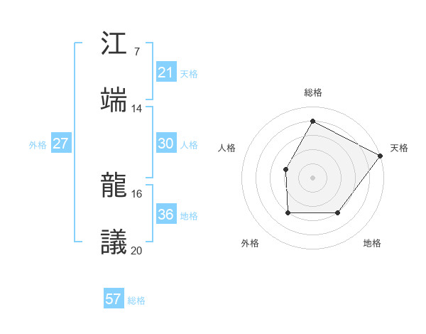 江端 龍議さんの総格は57画の4点!