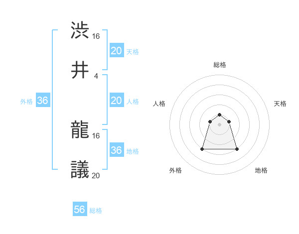 渋井 龍議さんの総格は56画の1点!