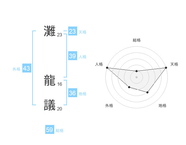 灘 龍議さんの総格は59画の1点!