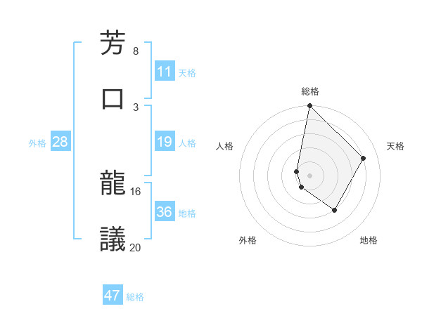 芳口 龍議さんの総格は47画の5点!
