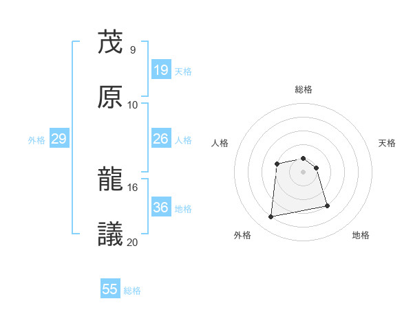 茂原 龍議さんを姓名の画数から五運を鑑定