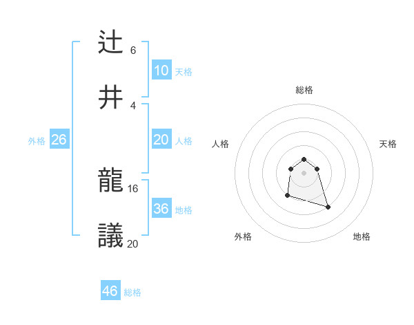 辻井 龍議さんの総格は46画の1点!