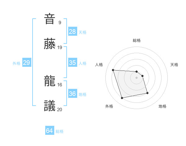 音藤 龍議さんの総格は64画の1点!