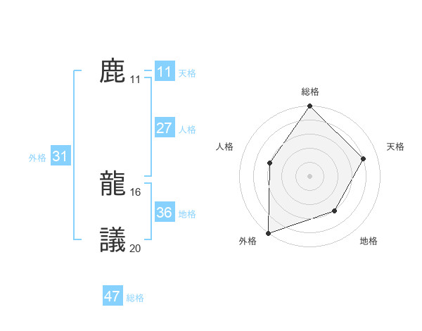 鹿 龍議さんを姓名の画数から五運を鑑定