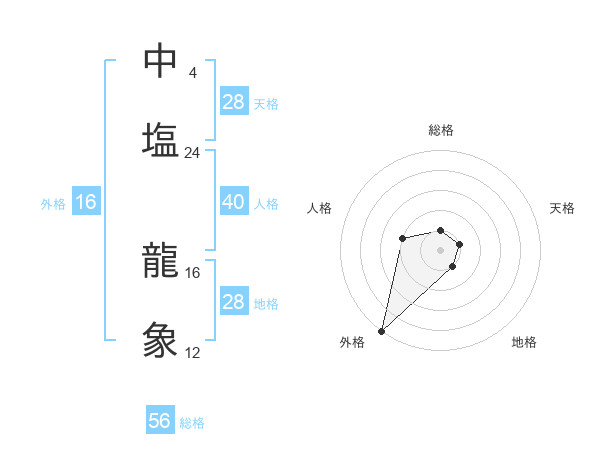中塩 龍象さんの天格は28画の1点!