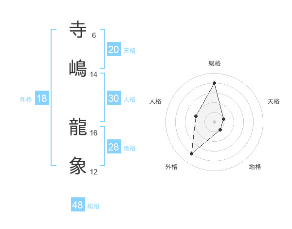 寺嶋 龍象さんの総格は48画の4点!