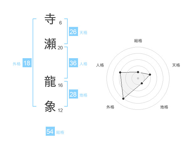 寺瀬 龍象さんを姓名の画数から五運を鑑定