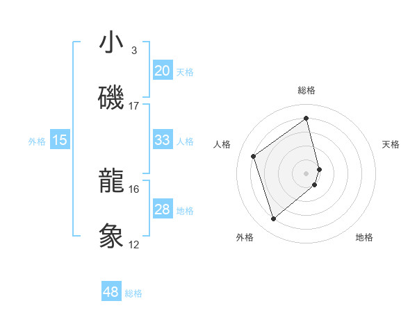 小磯 龍象さんの天格は20画の1点!