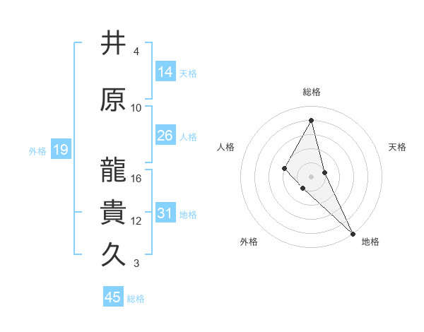 井原 龍貴久さんを姓名の画数から五運を鑑定