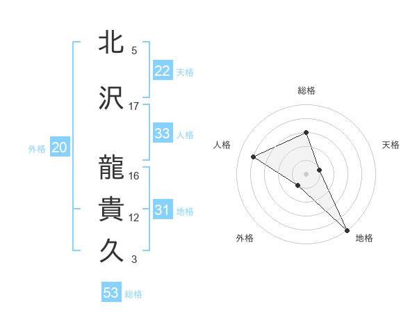 北沢 龍貴久さんの地格は31画の5点!