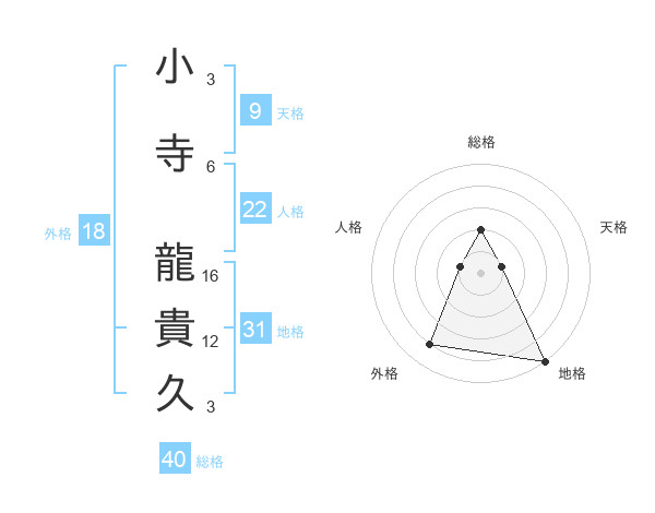 小寺 龍貴久さんを姓名の画数から五運を鑑定