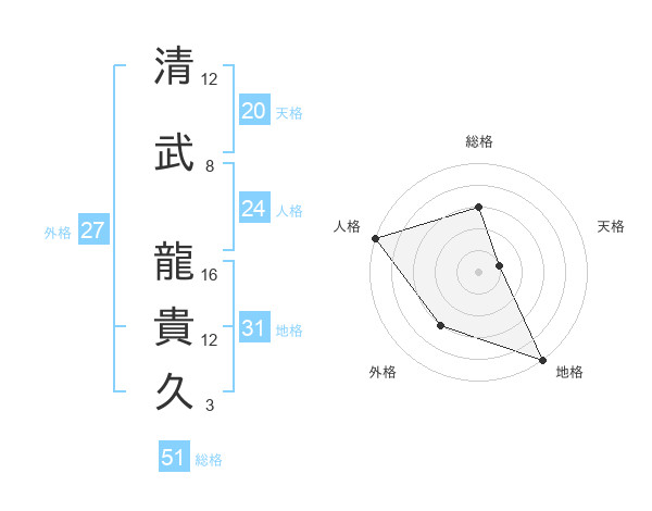 清武 龍貴久さんの総格は51画の3点!
