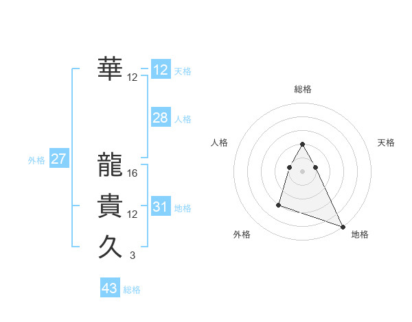 華 龍貴久さんの天格は12画の1点!