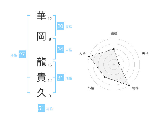 華岡 龍貴久さんを姓名の画数から五運を鑑定
