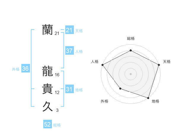 蘭 龍貴久さんを姓名の画数から五運を鑑定