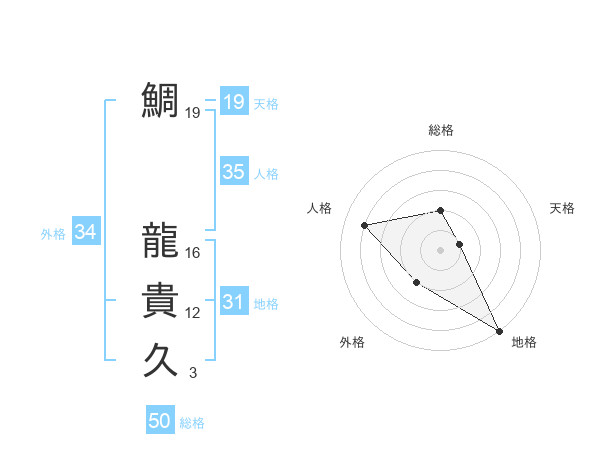 鯛 龍貴久さんの総格は50画の2点!