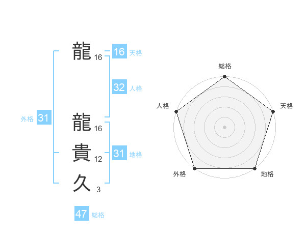 龍 龍貴久さんの地格は31画の5点!