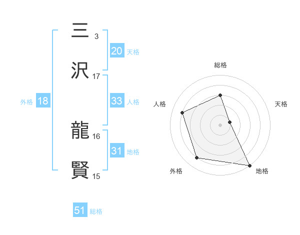 三沢 龍賢さんの総格は51画の3点!
