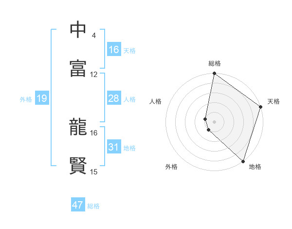 中富 龍賢さんを姓名の画数から五運を鑑定