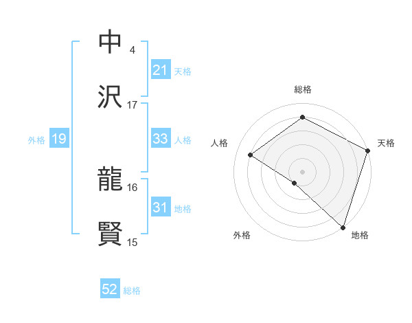 中沢 龍賢さんの総格は52画の4点!
