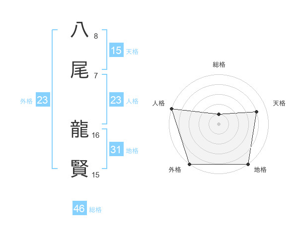 八尾 龍賢さんの外格は23画の5点!
