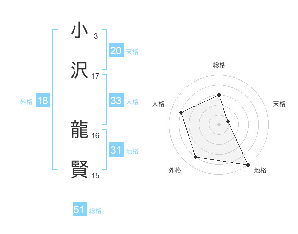 小沢 龍賢さんの総格は51画の3点!