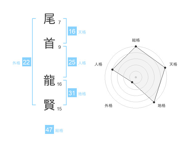 尾首 龍賢さんの総格は47画の5点!
