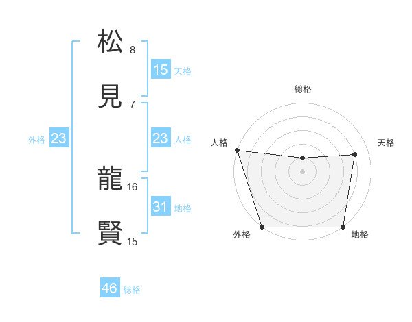 松見 龍賢さんを姓名の画数から五運を鑑定